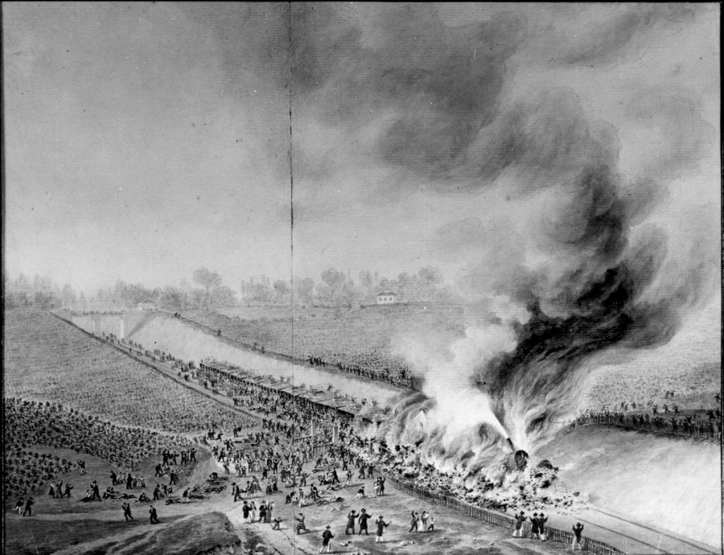 Le convoi traînait 710 personnes : ç’a été un épouvantable cri de lamentation, quand la secousse s’est fait sentir et quand l’incendie s’est déclaré.