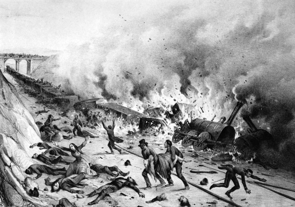 Le choc fut terrible ; les wagons se brisèrent, et un assez grand nombre de personnes furent tuées ou blessées.