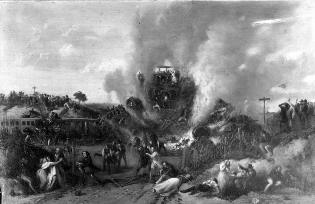 Alors que le chemin de fer se met en place en France, une grave catastrophe ferroviaire a lieu le 8 mai 1842 à Meudon. Ce fut la première et la plus grave du genre. A l’époque, après un procès, on dénombra 55 morts et 109 blessés. Cependant, depuis peu d’années, de nouvelles recherches ont permis d’affirmer qu’il y eut en réalité environ 200 morts et un très grand nombre de blessés. Ces articles montrent que, durant quelques mois, l’opinion publique réagit assez mal à cette catastrophe…